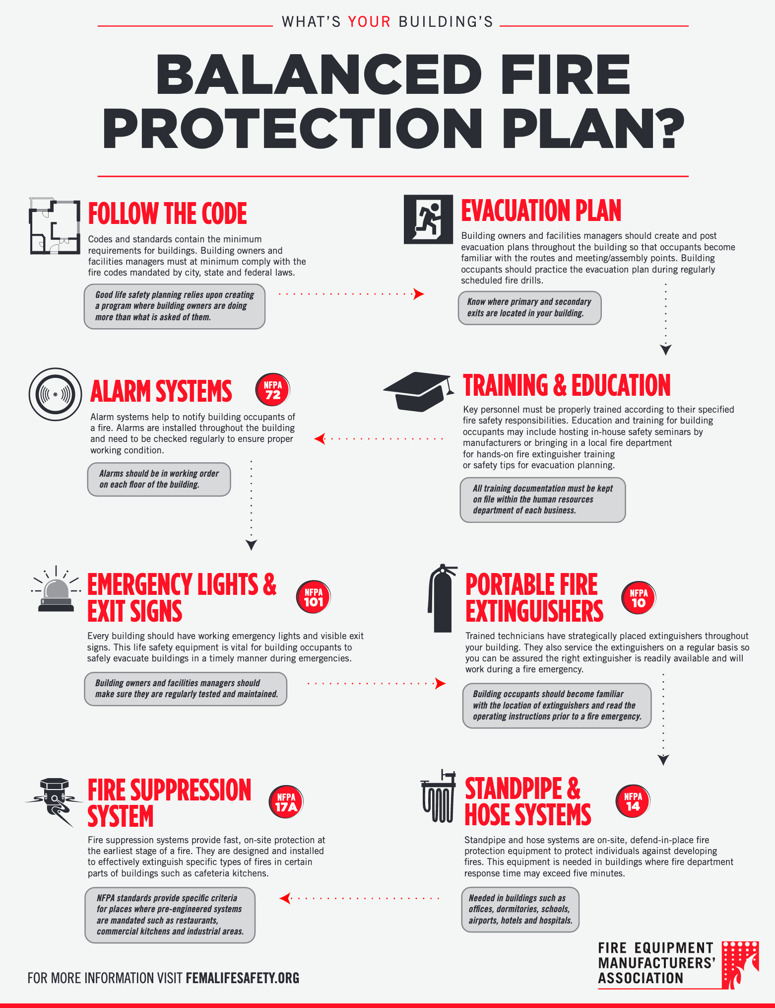 Fire Safety should be on the top of everyone’s mind. With a well designed and balanced fire protection plan your employees will be educated and prepared for emergencies and your building will be better protected. For more information on fire safety contact the Fire Protection Experts at Metro Fire and Security.Click here to view the entire image. Visit FEMALIFESAFETY.org for great information just like the image presented in this post.